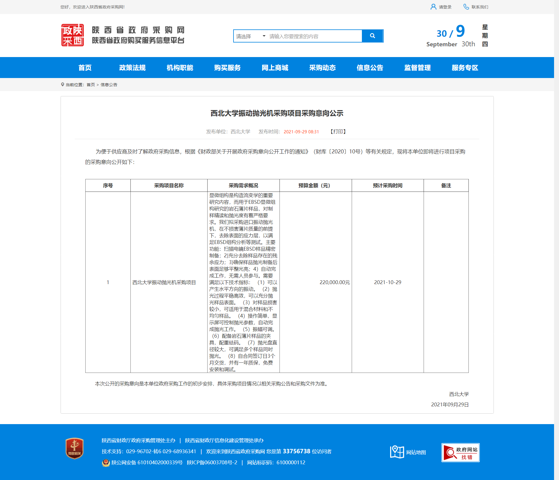 米兰买球振动抛光机采购项目采购意向公示 作者: 编辑:采购与招标办公室 时间:2021-09-30 原公告地址:http://www.ccgp-shaanxi.gov.cn/notice/noticeDetail.do?noticeguid=8a85be337c20d0b4017c2ef28a5109d6