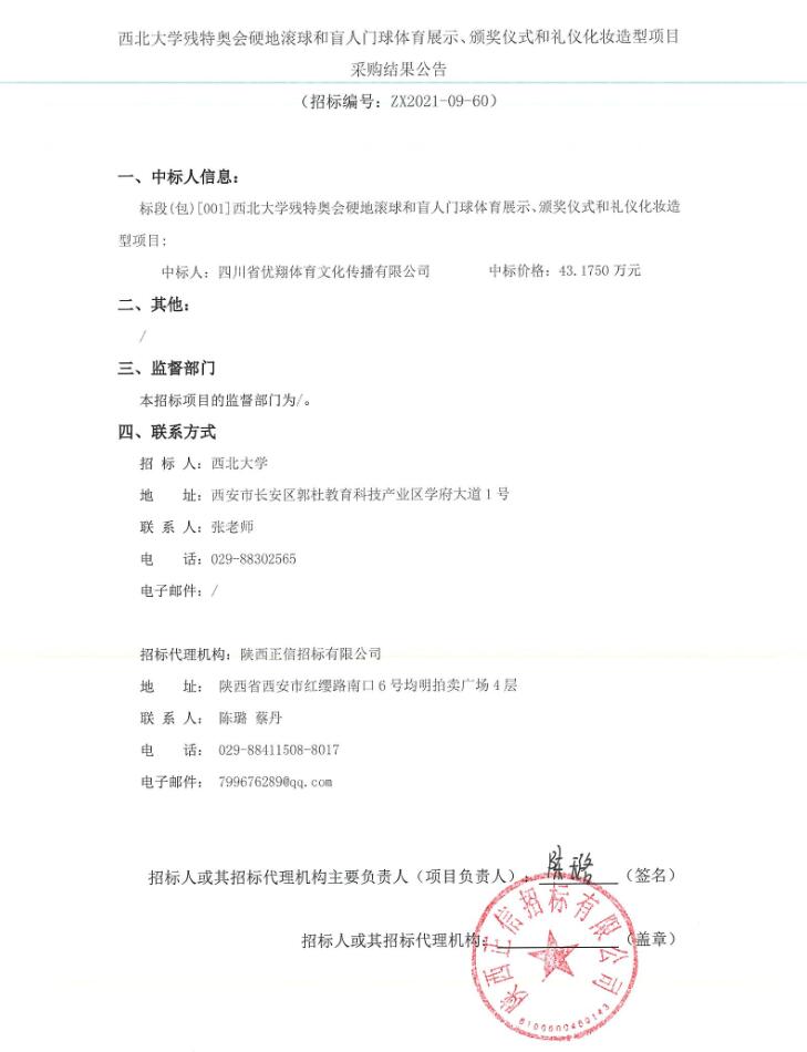 关于米兰买球残特奥会硬地滚球和盲人门球体育展示、颁奖仪式和礼仪化妆造型项目采购结果公告