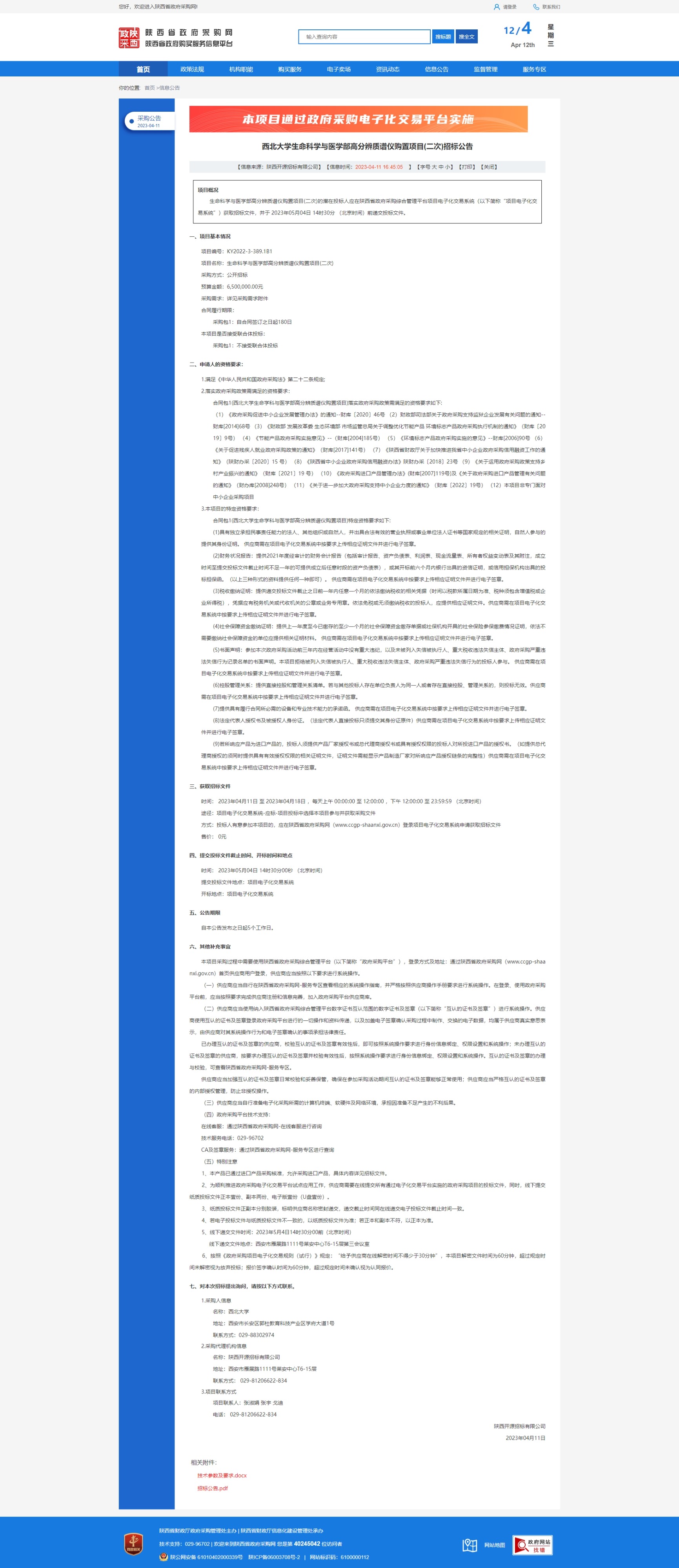 米兰买球生命科学与医学部高分辨质谱仪购置项目(二次)招标公告 作者: 编辑:采购与招标办公室 时间:2023-04-12 原公告链接:http://www.ccgp-shaanxi.gov.cn/freecms/site/shaanxi/ggxx/info/2023/8a69c1d08729508201876f61b85a088e.html?noticeType=001011¬iceId=199c1a02-d846-11ed-9a8e-08c0eb20c666