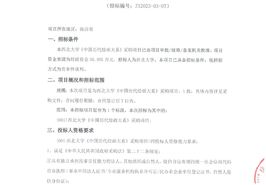 米兰买球《中国历代绘画大系》采购项目竞争性谈判公告 作者: 编辑:采购与招标办公室 时间:2023-04-18 原公告链接:http://bulletin.sntba.com/biddingBulletin/2023-04-18/548646.html