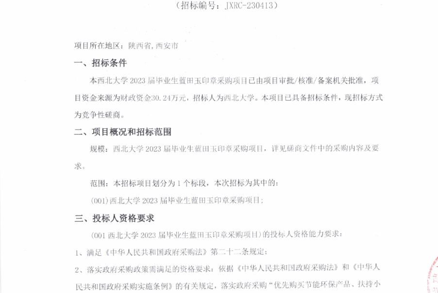 米兰买球2023届毕业生蓝田玉印章采购项目竞争性磋商公告 作者: 编辑:采购与招标办公室 时间:2023-04-21 原公告链接:http://bulletin.sntba.com/biddingBulletin/2023-04-21/550306.html