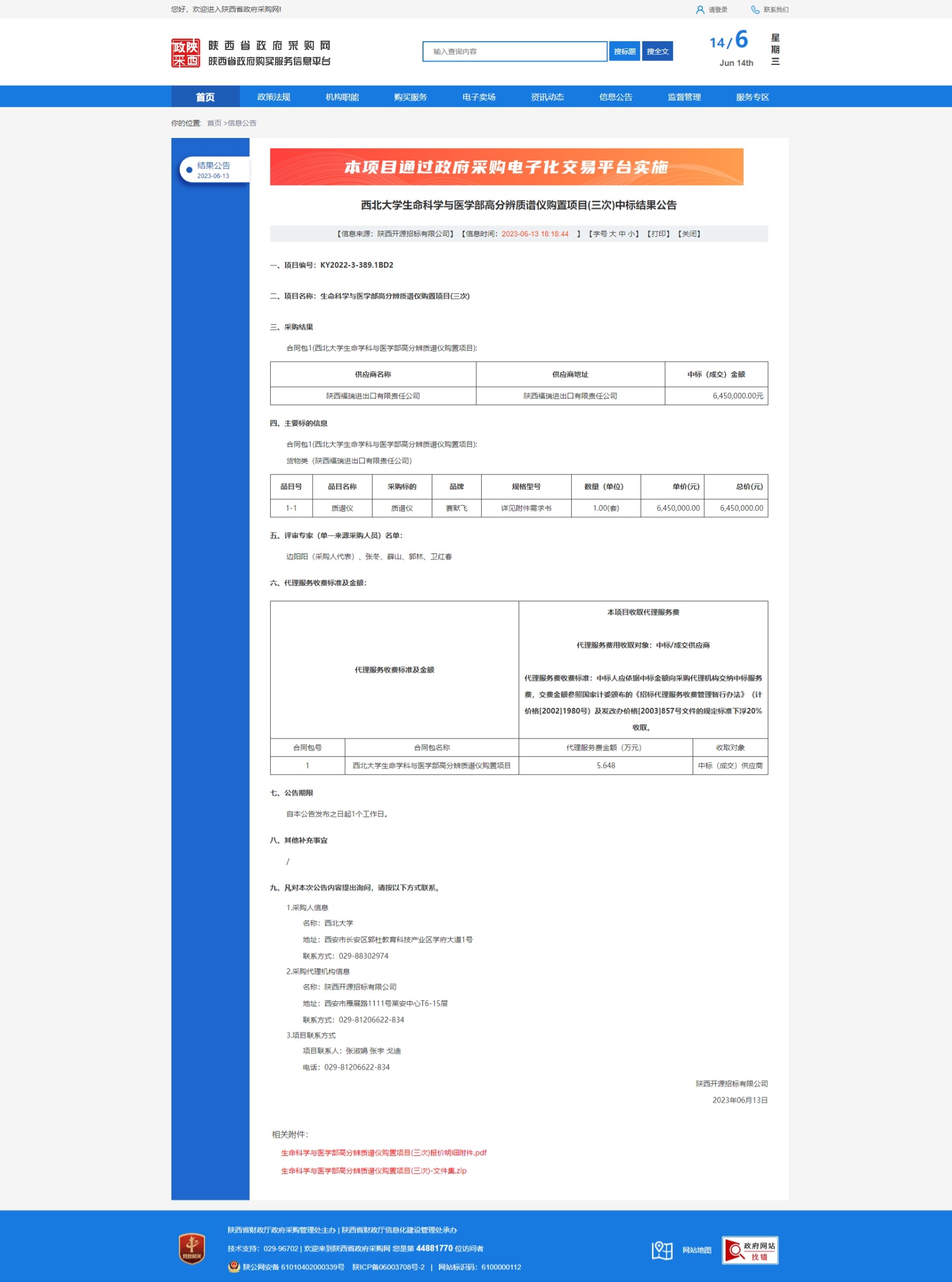 米兰买球生命科学与医学部高分辨质谱仪购置项目(三次)中标结果公告 作者: 编辑:采购与招标办公室 时间:2023-06-14 原公告链接:http://www.ccgp-shaanxi.gov.cn/freecms/site/shaanxi/ggxx/info/2023/8a69c931884486120188b42f90a63f97.html?noticeType=001025¬iceId=bce12c69-09d4-11ee-9a8e-08c0eb20c666