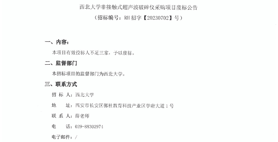 米兰买球非接触式超声波破碎仪采购项目废标公告 作者: 编辑:采购与招标办公室 时间:2023-09-07 原公告链接:http://bulletin.sntba.com/changeBulletin/2023-09-07/651428.html