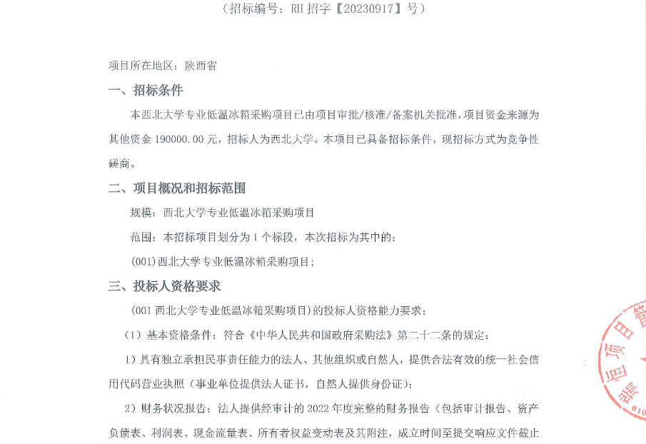 米兰买球专业低温冰箱采购项目竞争性磋商公告 作者: 编辑:采购与招标办公室 时间:2023-09-22 原公告链接:http://bulletin.sntba.com/biddingBulletin/2023-09-22/680755.html
