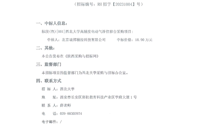 米兰买球高精度电动气浮位移台采购项目成交结果公告 作者: 编辑: 时间:2023-10-31 原公告链接:http://bulletin.sntba.com/resultBulletin/2023-10-31/770888.html