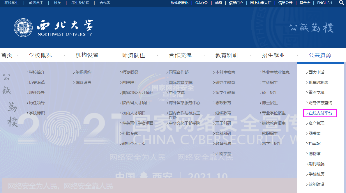 电脑端:登录学校官网米兰买球(中国),右上角选择“公共资源”频道,点击“在线支付平台”进入。(见下图)