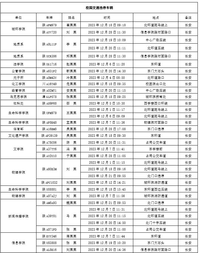 为加强校内道路交通安全管理,规范校内交通秩序,根据《米兰买球校园道路交通管理办法》有关要求,现将2023年12月校园交通违章车辆予以曝光,所在单位负责对本单位违章师生员工进行交通安全教育和日常管理。