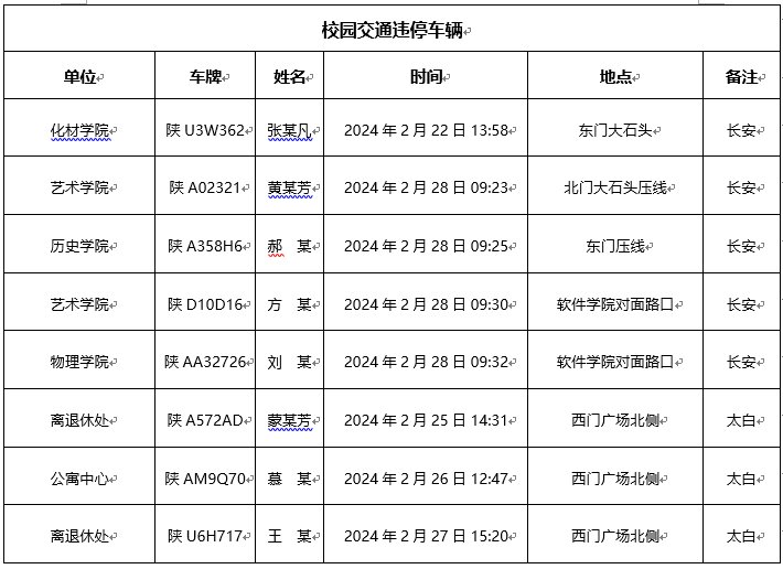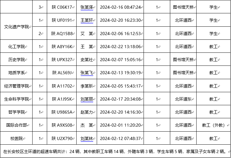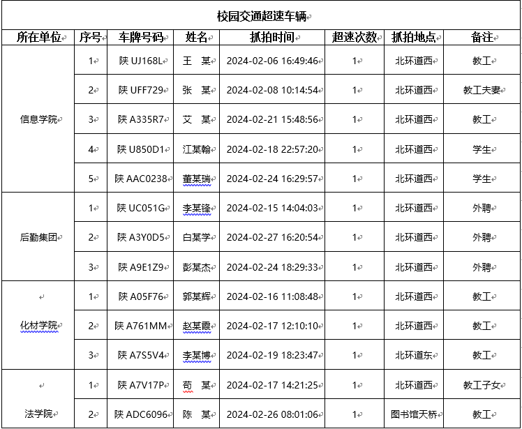 为加强校内道路交通安全管理,规范校内交通秩序,根据《米兰买球校园道路交通管理办法》有关要求,现将2024年2月校园交通违章车辆予以曝光,所在单位负责对本单位违章师生员工进行交通安全教育和日常管理。