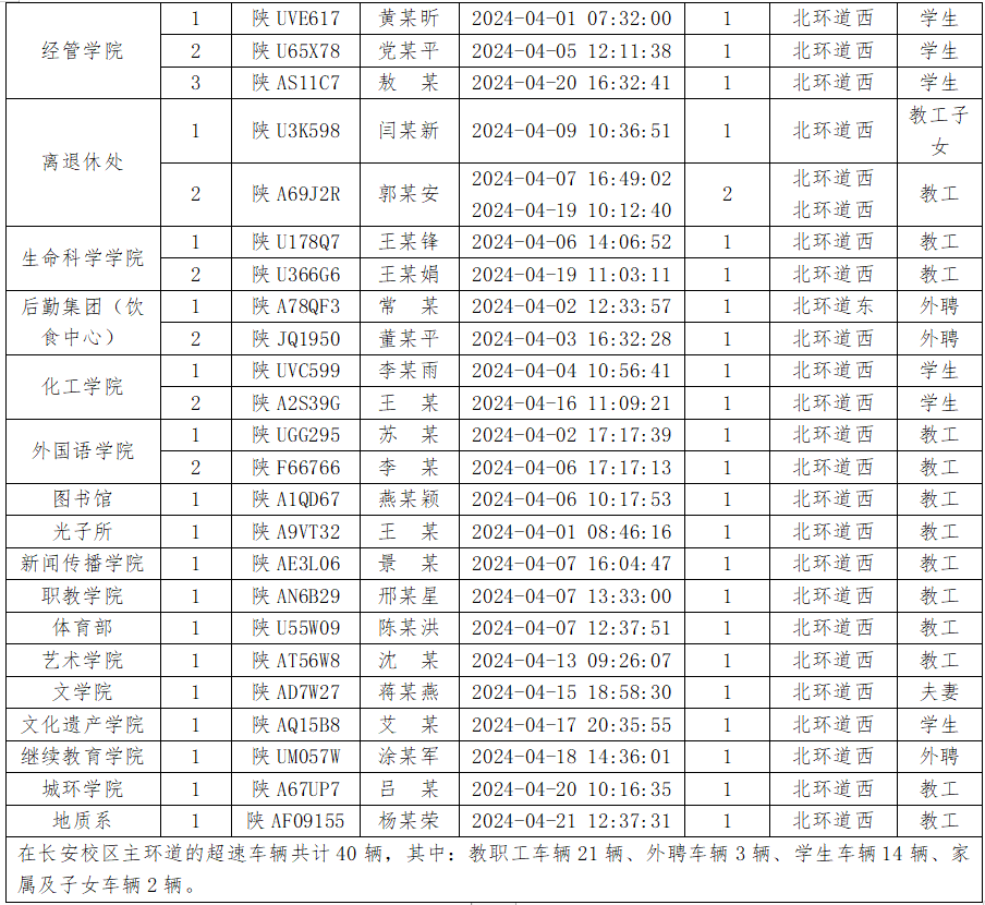为加强校内道路交通安全管理,规范校内交通秩序,根据《米兰买球校园道路交通管理办法》有关要求,现将2024年4月校园交通违章车辆予以曝光,4月份教工超速车辆占52%、学生超速车辆占35%、外聘职工及教工家属车辆占12%,请所在单位加强对本单位违章师生员工的教育和管理,对于校内曝光超速的学生车辆将取消下一年度的通行证办理资格。