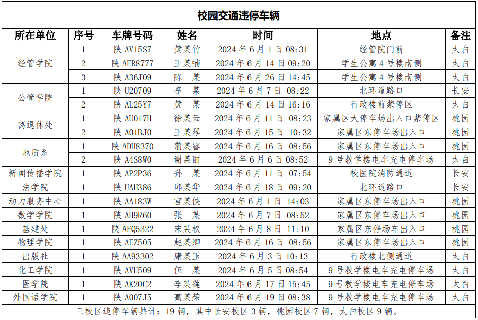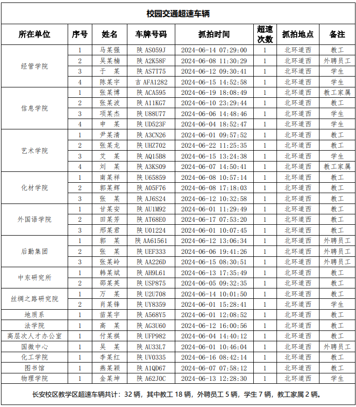 为加强校内道路交通安全管理,规范校内交通秩序,根据《米兰买球校园道路交通管理办法》有关要求,现将2024年6月校园交通违章车辆予以曝光,所在单位负责对本单位违章师生员工进行交通安全教育和日常管理,对于校内曝光超速的学生车辆将取消下一年度的通行证办理资格。