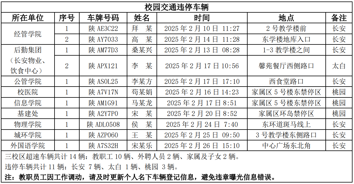 为进一步加强校园交通管理,保障校园交通安全有序,维护学校正常的教学、科研和生活秩序,切实保护师生员工的人身财产安全,根据《米兰买球校园交通安全管理规定》的相关要求,现将2025年2月校园交通违章车辆予以曝光,具体要求与违章信息如下。
