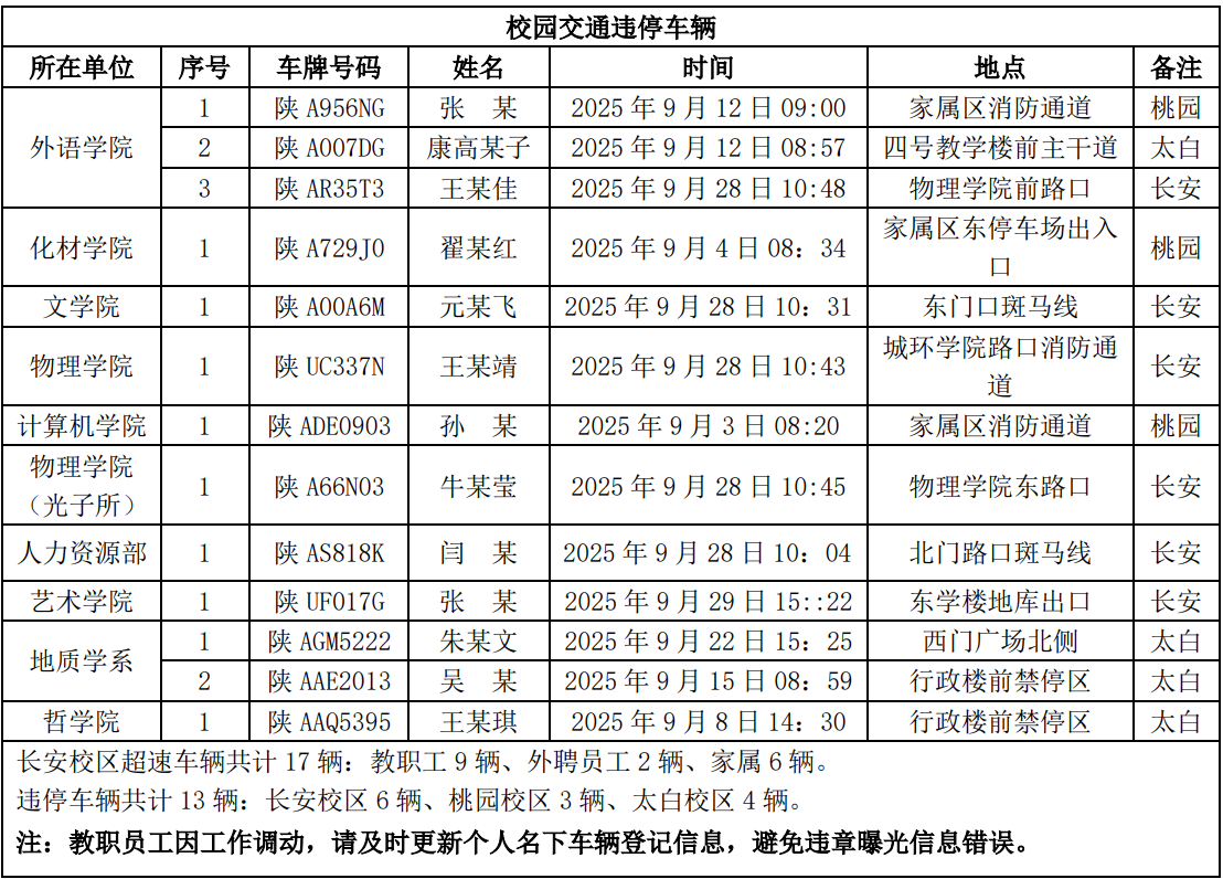 为进一步加强校园交通管理,保障校园交通安全有序,维护学校正常的教学、科研和生活秩序,切实保护师生员工的人身财产安全,根据《米兰买球校园交通安全管理规定》的相关要求,现将2025年9月校园交通违章车辆予以曝光,具体要求与违章信息如下:
