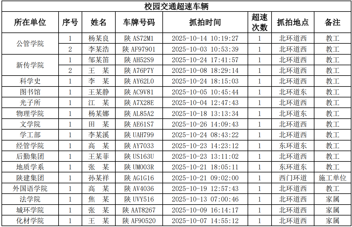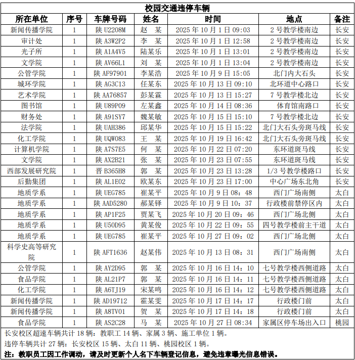 为进一步加强校园交通管理,保障校园交通安全有序,维护学校正常的教学、科研和生活秩序,切实保护师生员工的人身财产安全,根据《米兰买球校园交通安全管理规定》的相关要求,现将2025年10月校园交通违章车辆予以曝光,具体要求与违章信息如下: