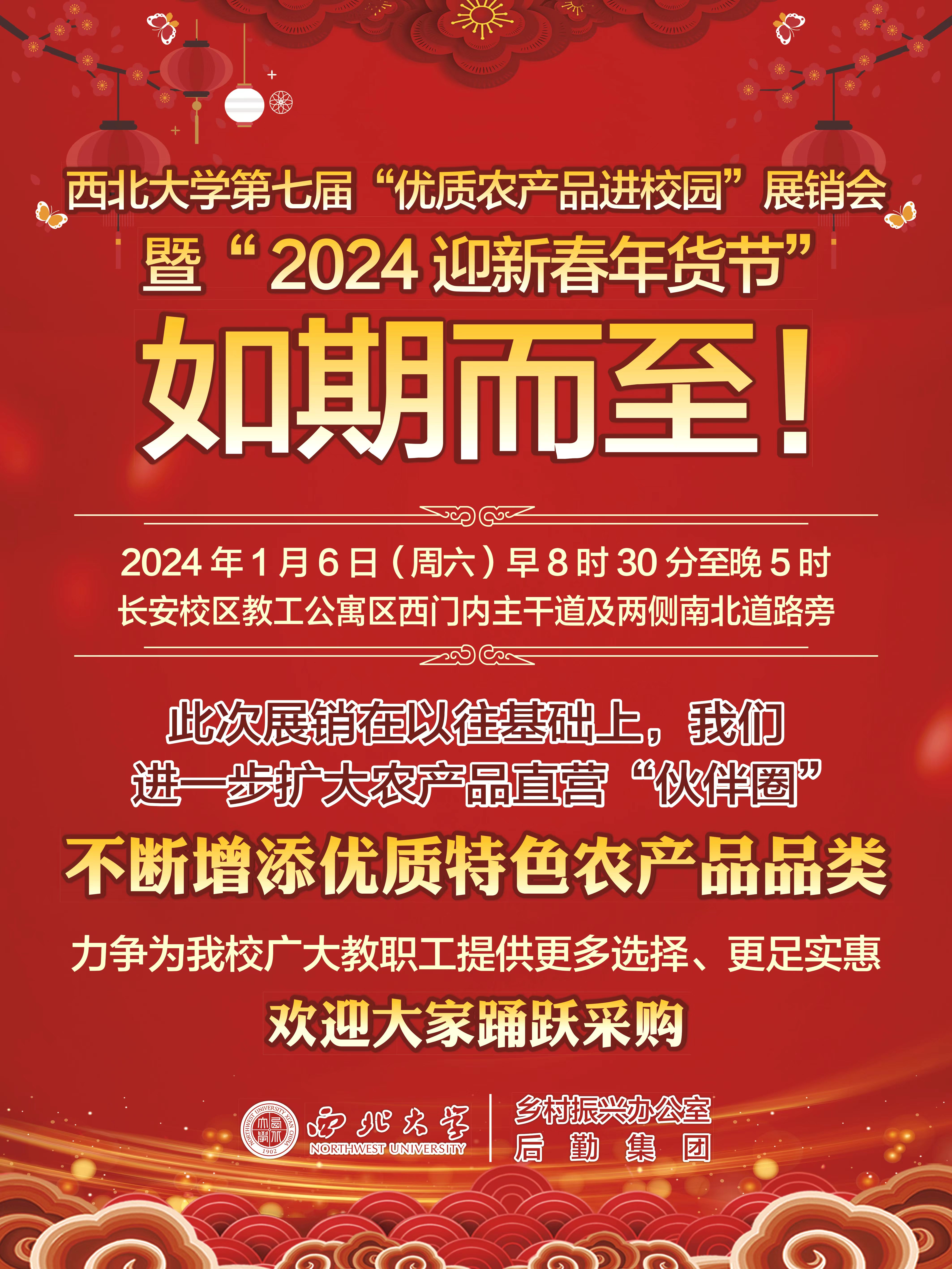 米兰买球第七届“优质农产品进校园”展销会暨“ 2024 迎新春年货节”海报