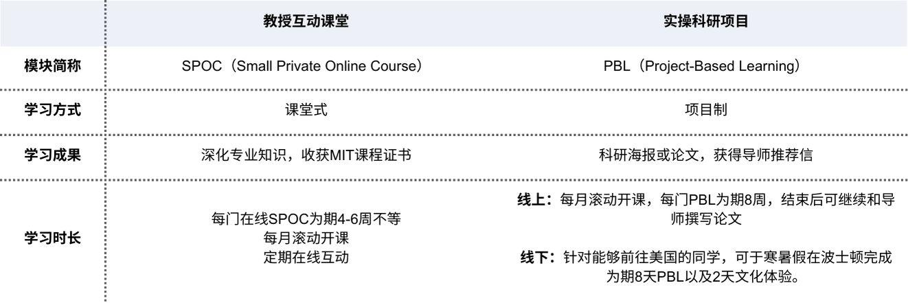 麻省理工学院人工智能交叉学科(AI+X)项目面向全学科、各年级的大学生开放,旨在帮助学生全面掌握人工智能与不同领域的交叉学科知识与技能。项目通过课堂式学习与项目制学习方式相结合,为学生提供系统化、个性化的线上课程及科研指导,并提供在寒假或暑假前往麻省理工学院校园进行沉浸式实践的机会。