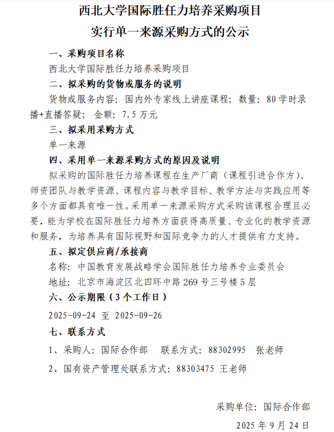 米兰买球国际胜任力培养采购项目实行单一来源采购方式的公示