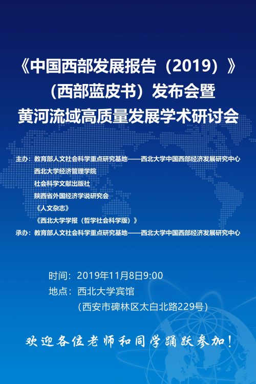 《中国西部发展报告(2019)》(西部蓝皮书)发布会暨黄河流域高质量发展学术研讨会