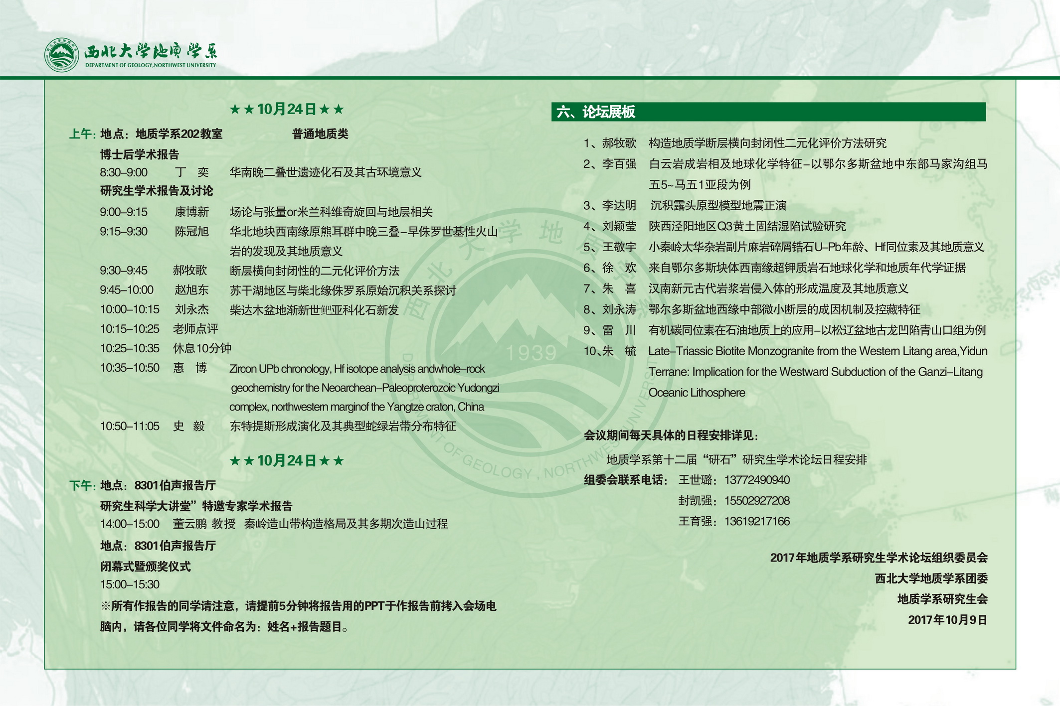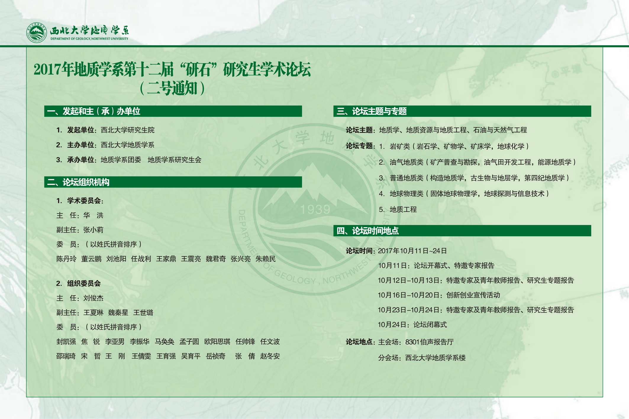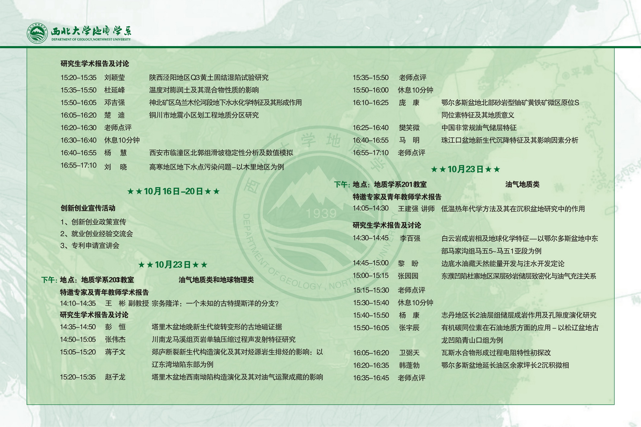 地质学系第十二届“研石”研究生学术论坛日程安排