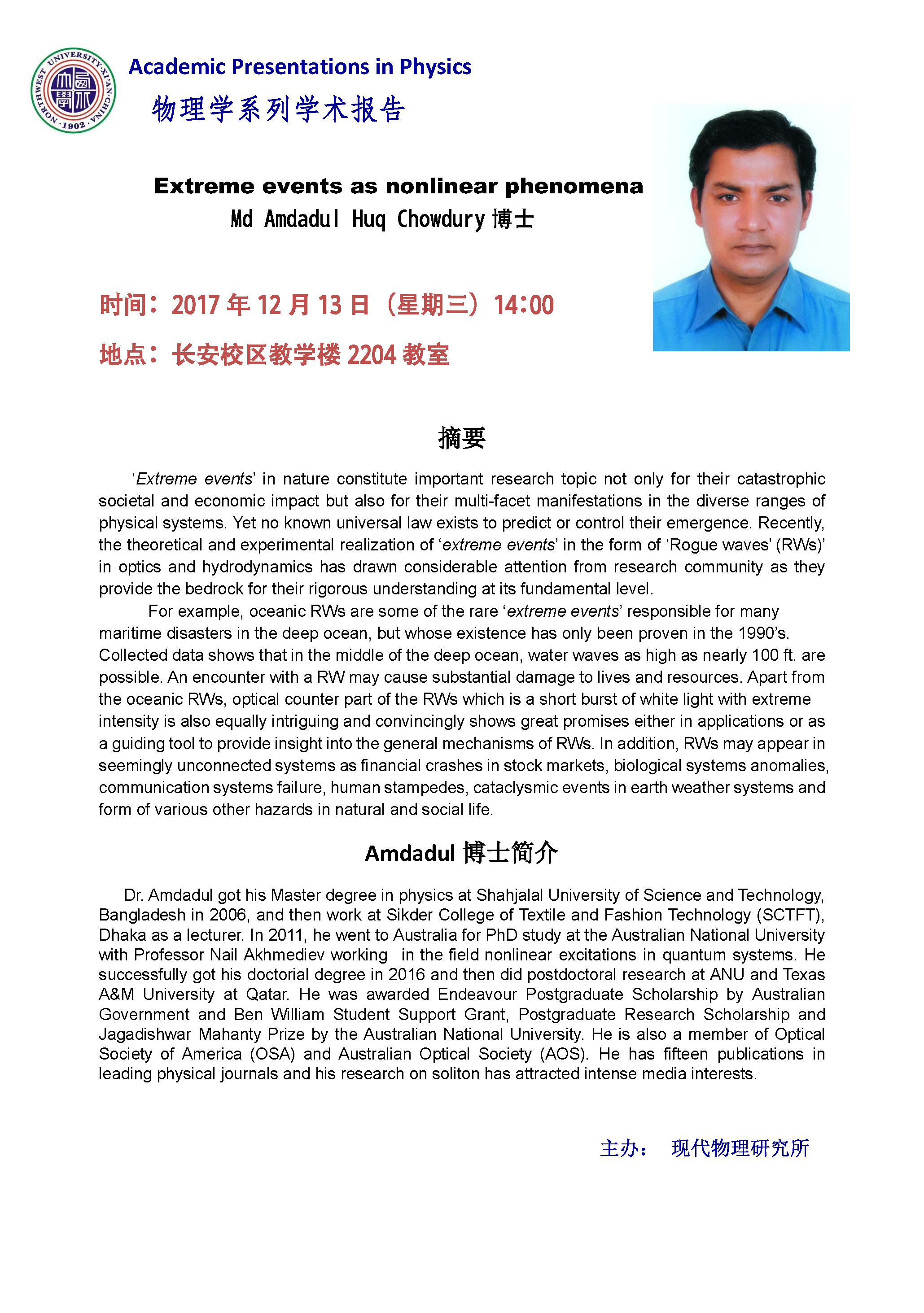 Md Amdadul Huq Chowdury博士学术报告