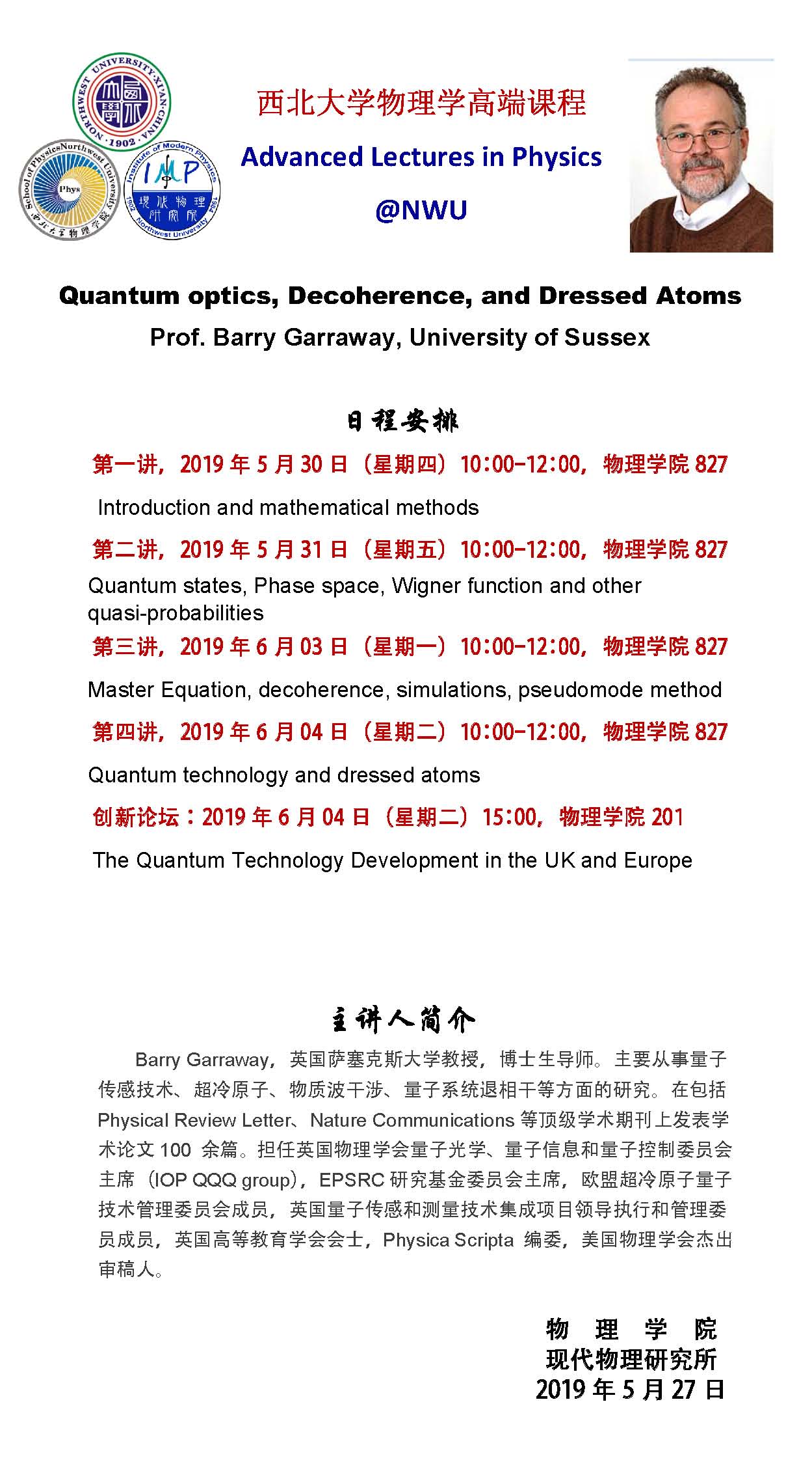 米兰买球物理学高端课程--Quantum optics, Decoherence, and Dressed Atoms