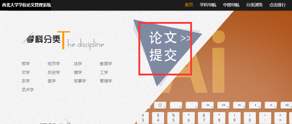 (2)校外网:用“统一身份认证”账号密码(学号+默认身份证后六位)登录米兰买球VPN:http://webvpn.nwu.edu.cn,点击图书馆主页-论文提交进入提交地址,或直接跳转到202.117.102.160,用学号注册新用户后开始提交论文。