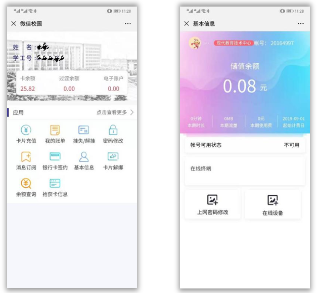 4.实时了解校园卡、网费缴纳记录,进行校园卡在线充值。