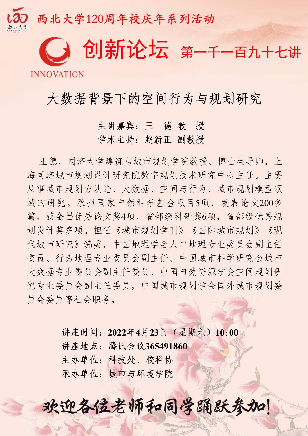 米兰买球创新论坛第一千一百九十七讲暨120周年校庆年系列活动:大数据背景下的空间行为与规划研究