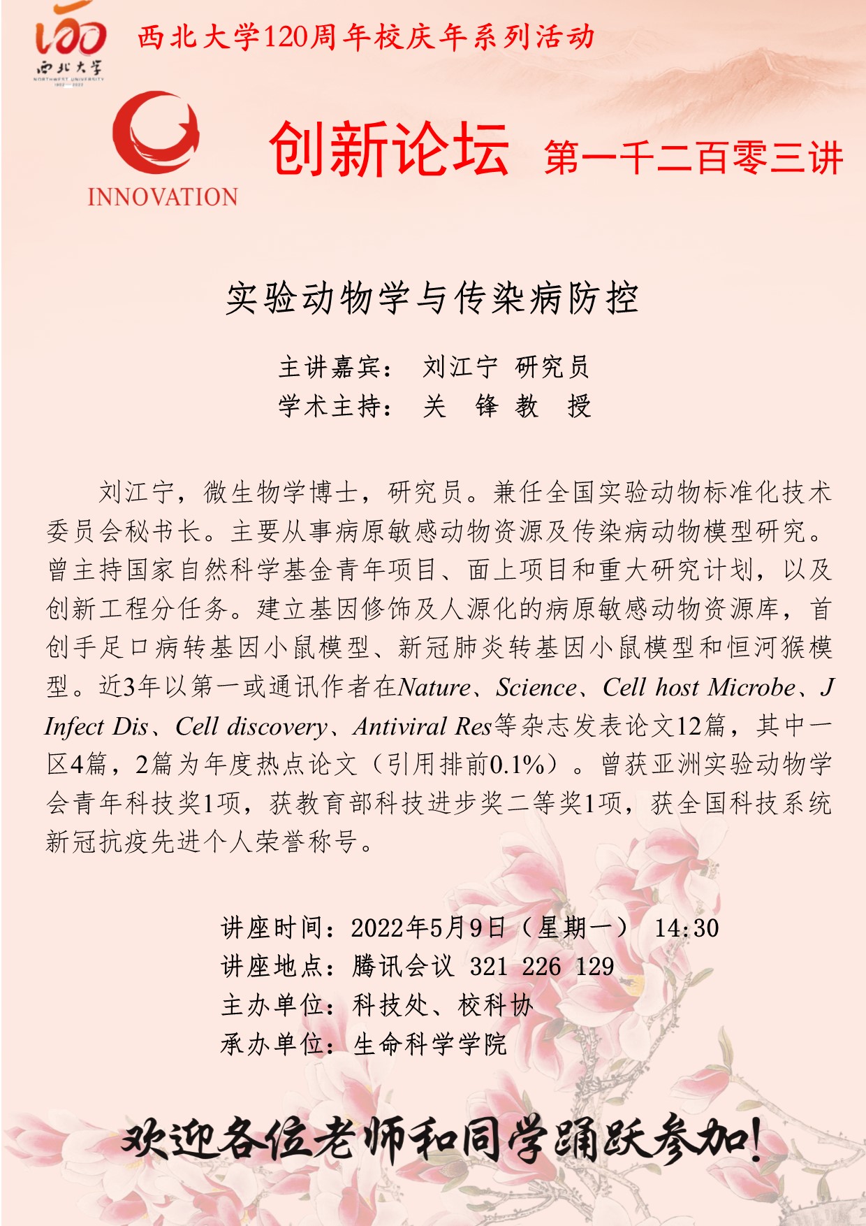 米兰买球创新论坛第一千二百零三讲暨120周年校庆年系列活动:实验动物学与传染病防控