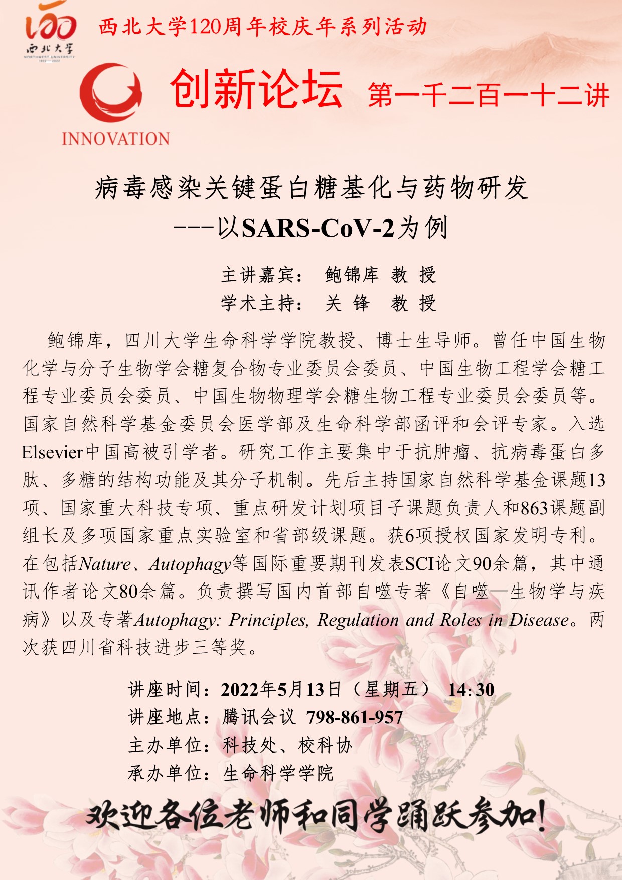 米兰买球创新论坛第一千二百一十二讲暨120周年校庆年系列活动:病毒感染关键蛋白糖基化与药物研发---以SARS-CoV-2为例