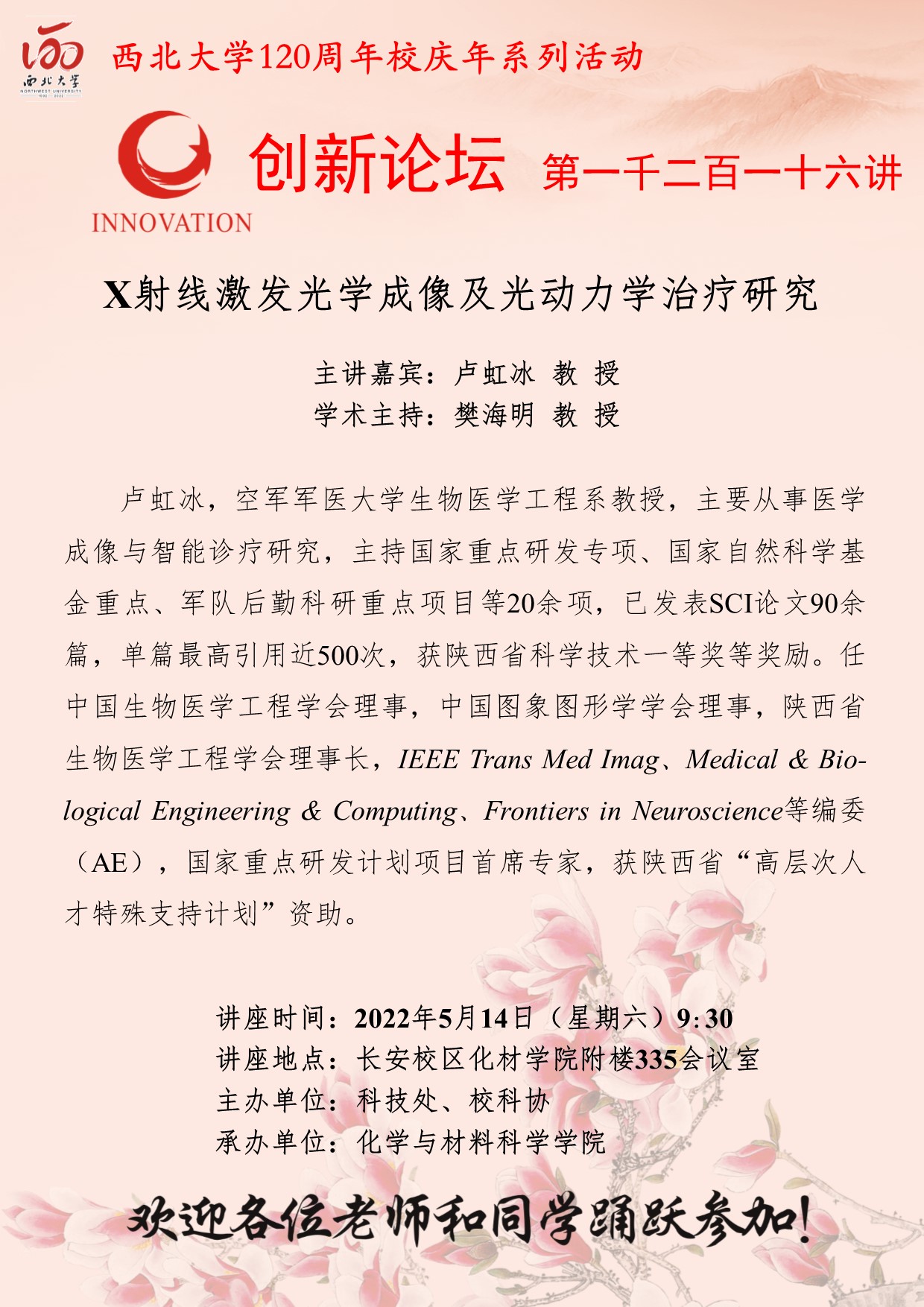 米兰买球创新论坛第一千二百一十六讲暨120周年校庆年系列活动:X射线激发光学成像及光动力学治疗研究