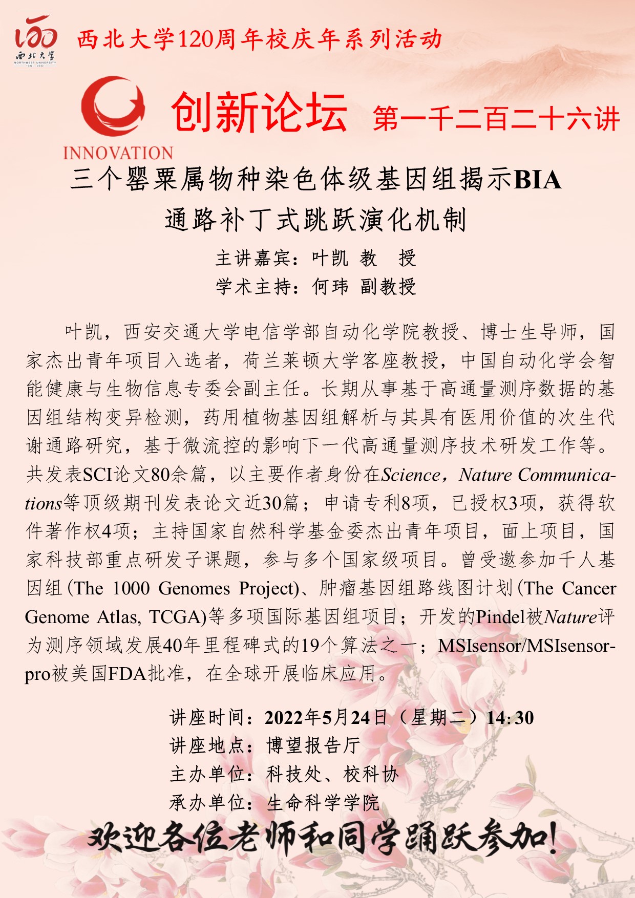 米兰买球创新论坛第一千二百二十六讲暨120周年校庆年系列活动:三个罂粟属物种染色体级基因组揭示BIA通路补丁式跳跃演化机制