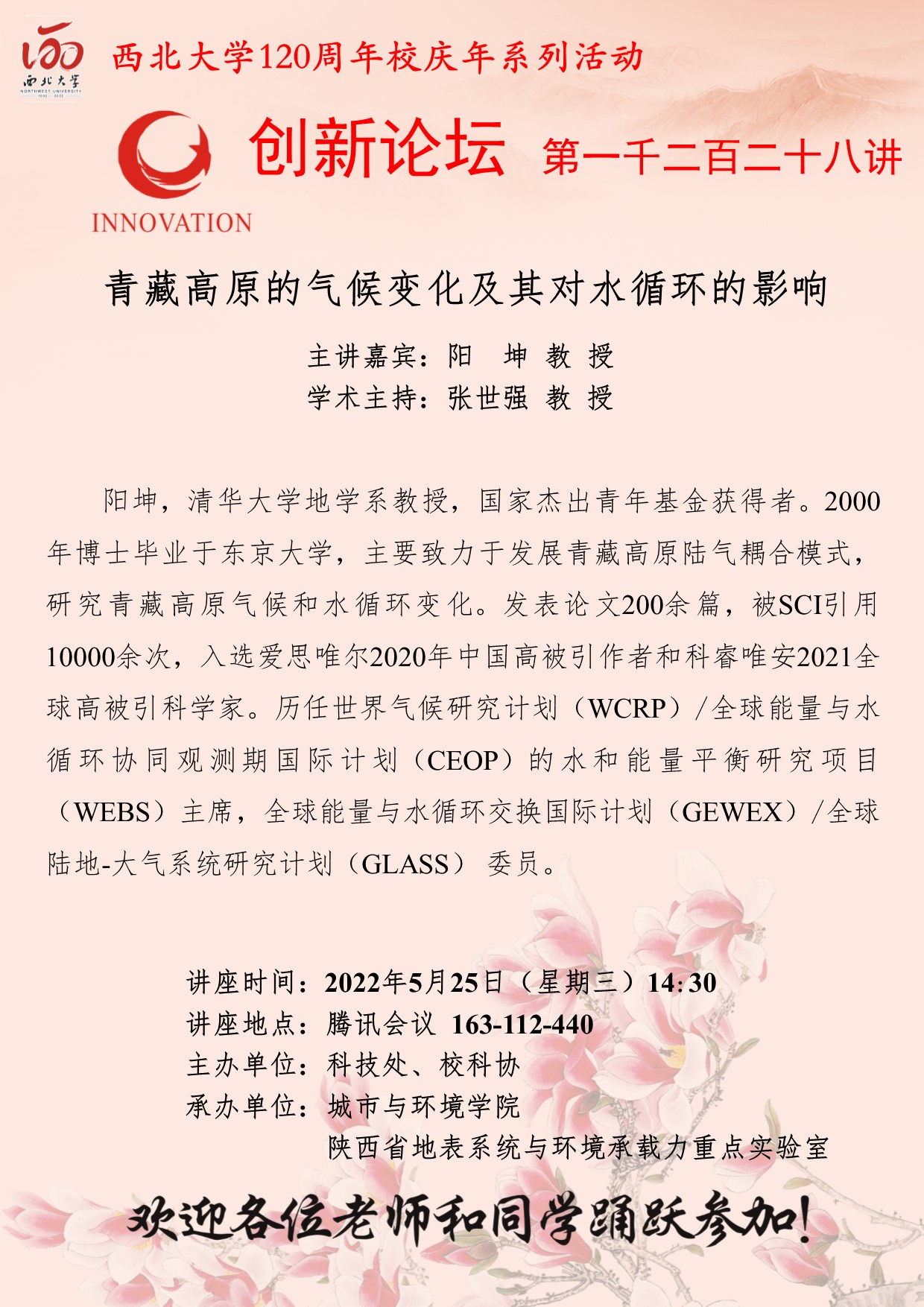 米兰买球创新论坛第一千二百二十八讲暨120周年校庆年系列活动:青藏高原的气候变化及其对水循环的影响