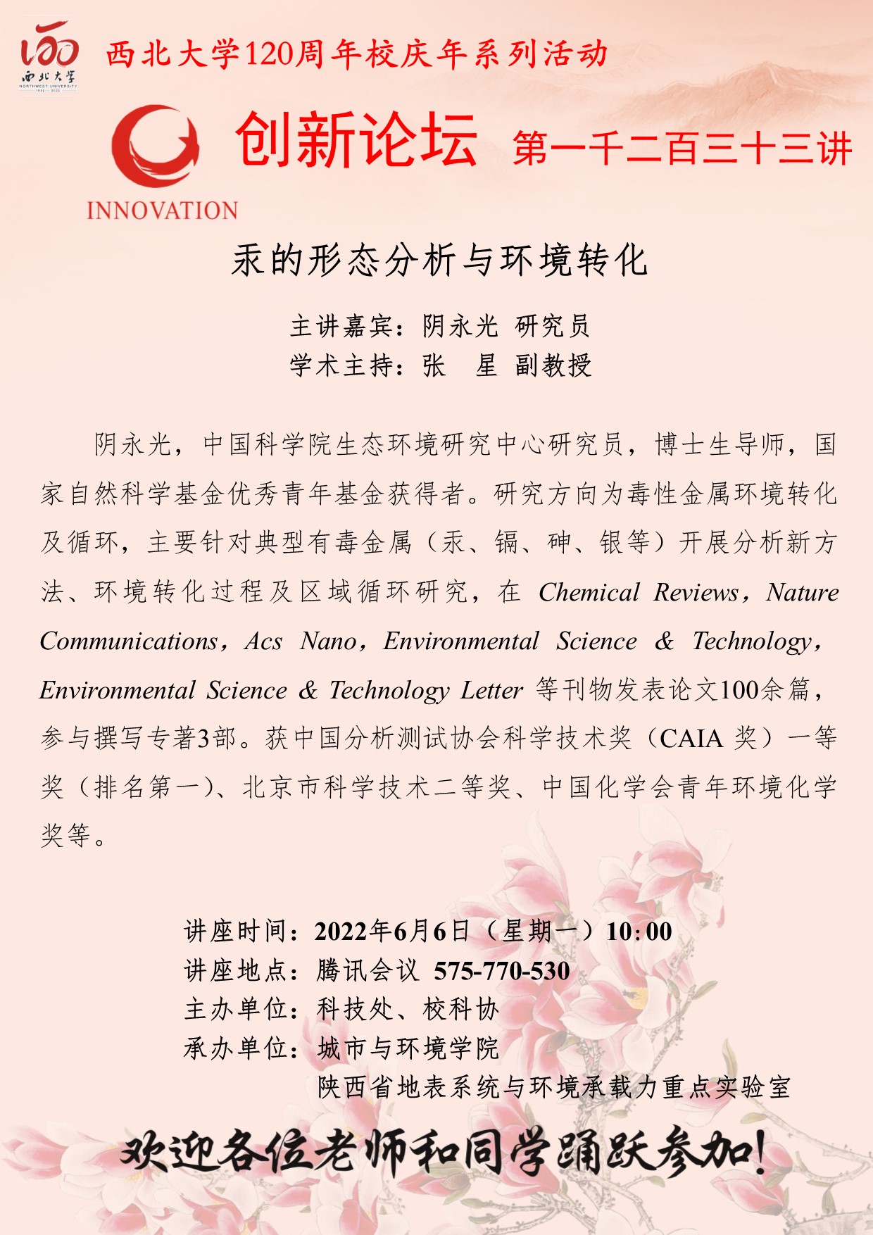 米兰买球创新论坛第一千二百三十三讲暨120周年校庆年系列活动:汞的形态分析与环境转化