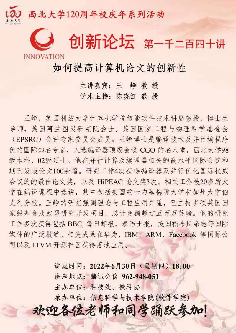 米兰买球创新论坛第一千二百四十讲暨120周年校庆年系列活动:如何提高计算机论文的创新性