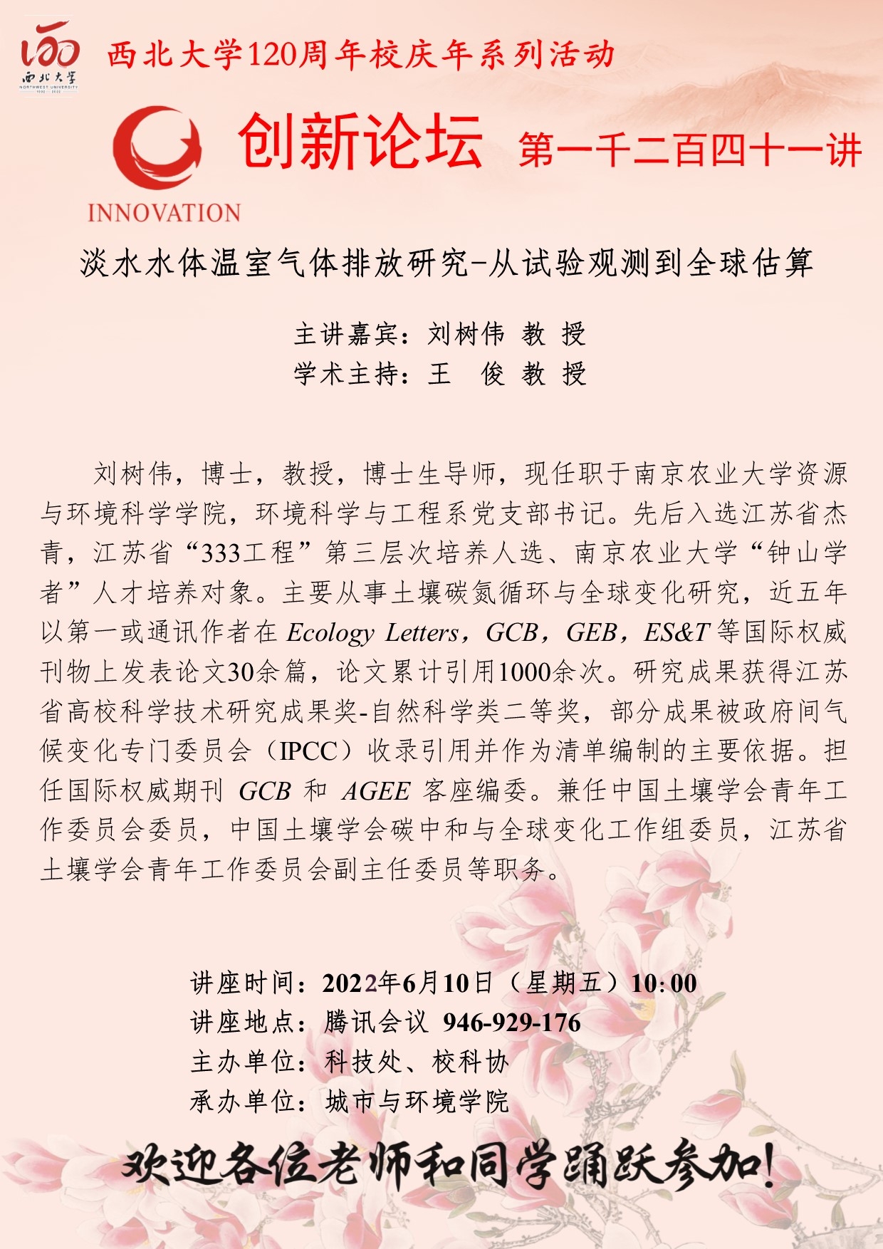 米兰买球创新论坛第一千二百四十一讲暨120周年校庆年系列活动:淡水水体温室气体排放研究-从试验观测到全球估算