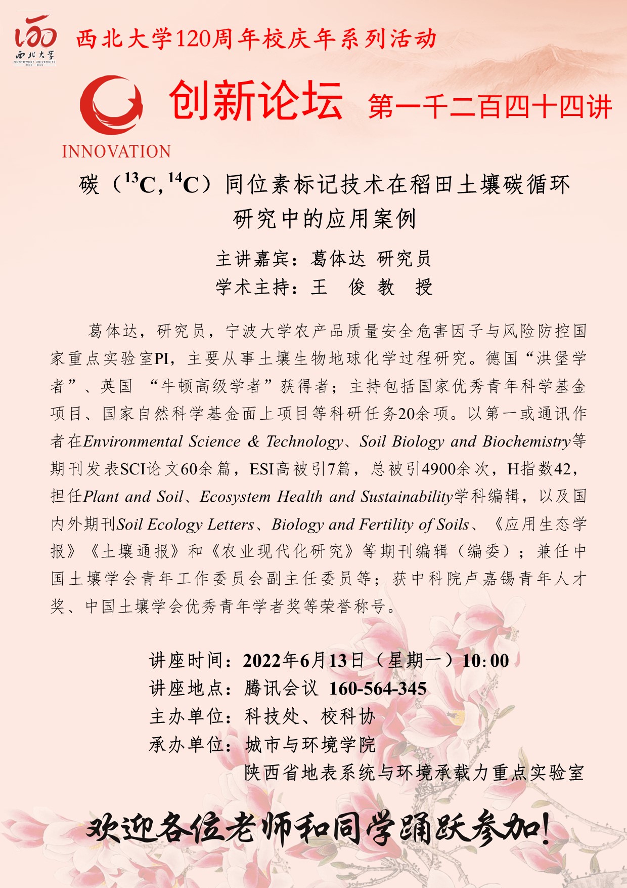 米兰买球创新论坛第一千二百四十四讲暨120周年校庆年系列活动:碳(13C,14C)同位素标记技术在稻田土壤碳循环研究中的应用案例