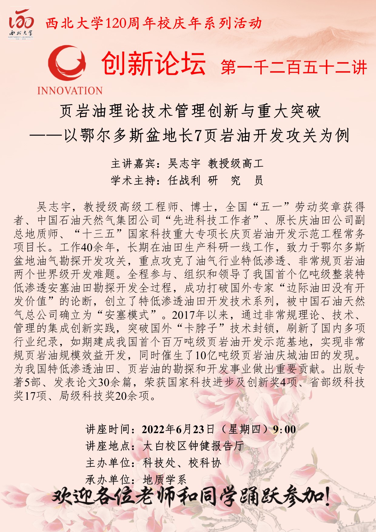 米兰买球创新论坛第一千二百五十二讲暨120周年校庆年系列活动:页岩油理论技术管理创新与重大突破——以鄂尔多斯盆地长7页岩油开发攻关为例