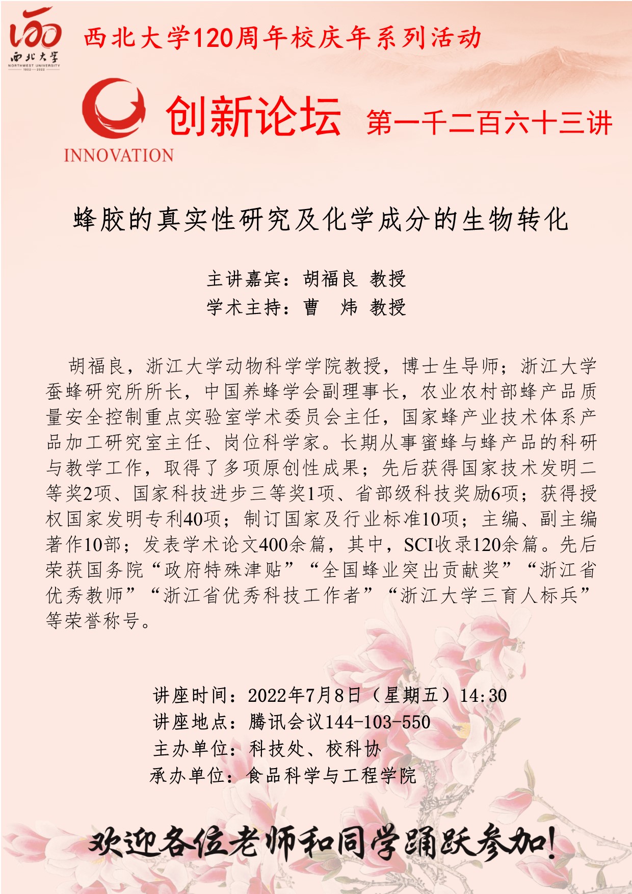米兰买球创新论坛第一千二百六十三讲暨120周年校庆年系列活动:蜂胶的真实性研究及化学成分的生物转化