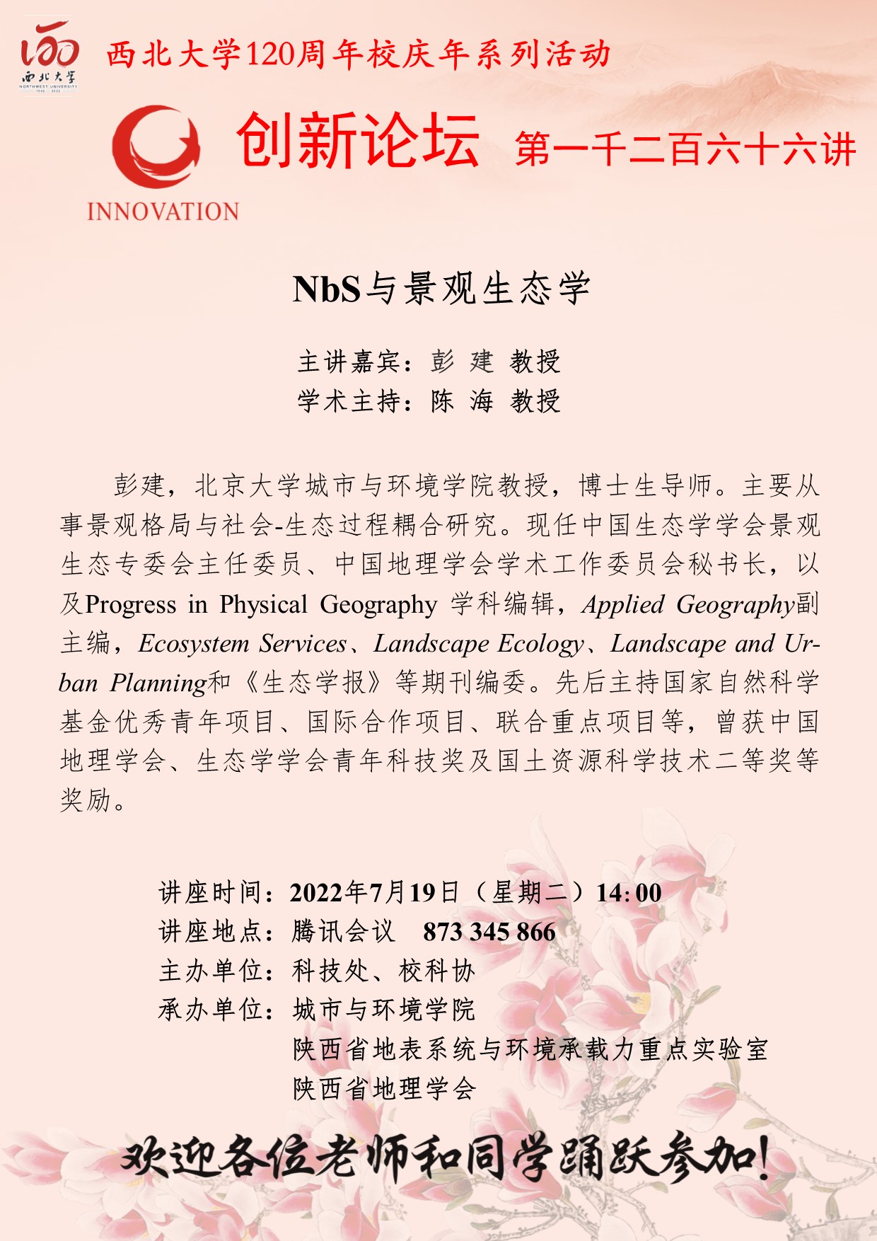 米兰买球创新论坛第一千二百六十六讲暨120周年校庆年系列活动:NbS与景观生态学