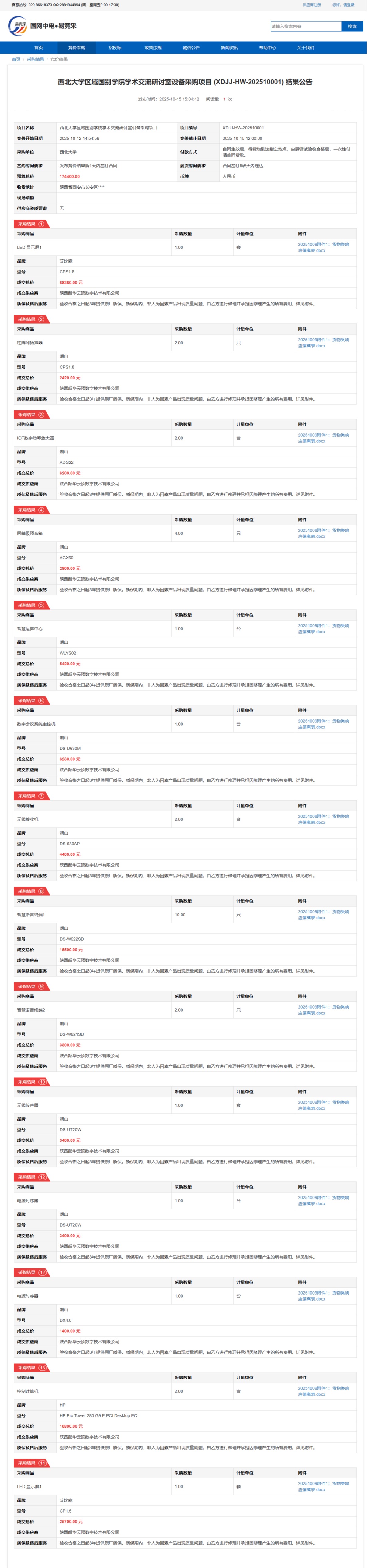 米兰买球区域国别学院学术交流研讨室设备采购项目(XDJJ-HW-202510001)竞价结果公告