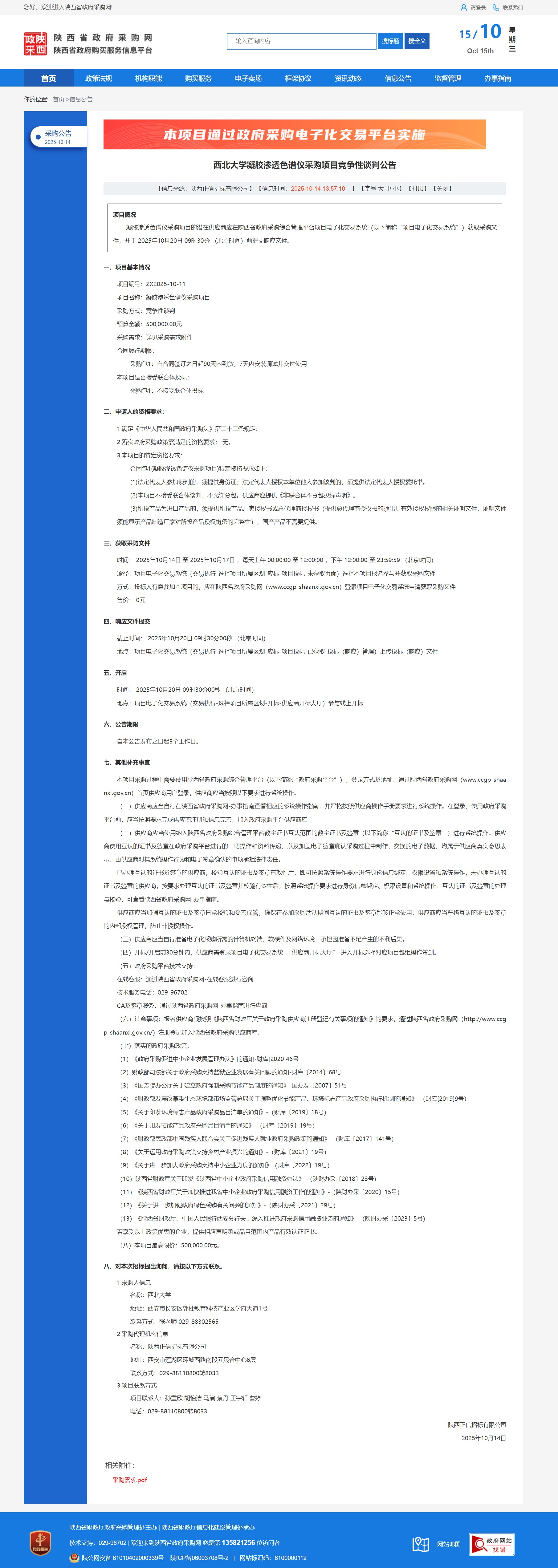 米兰买球凝胶渗透色谱仪采购项目竞争性谈判公告