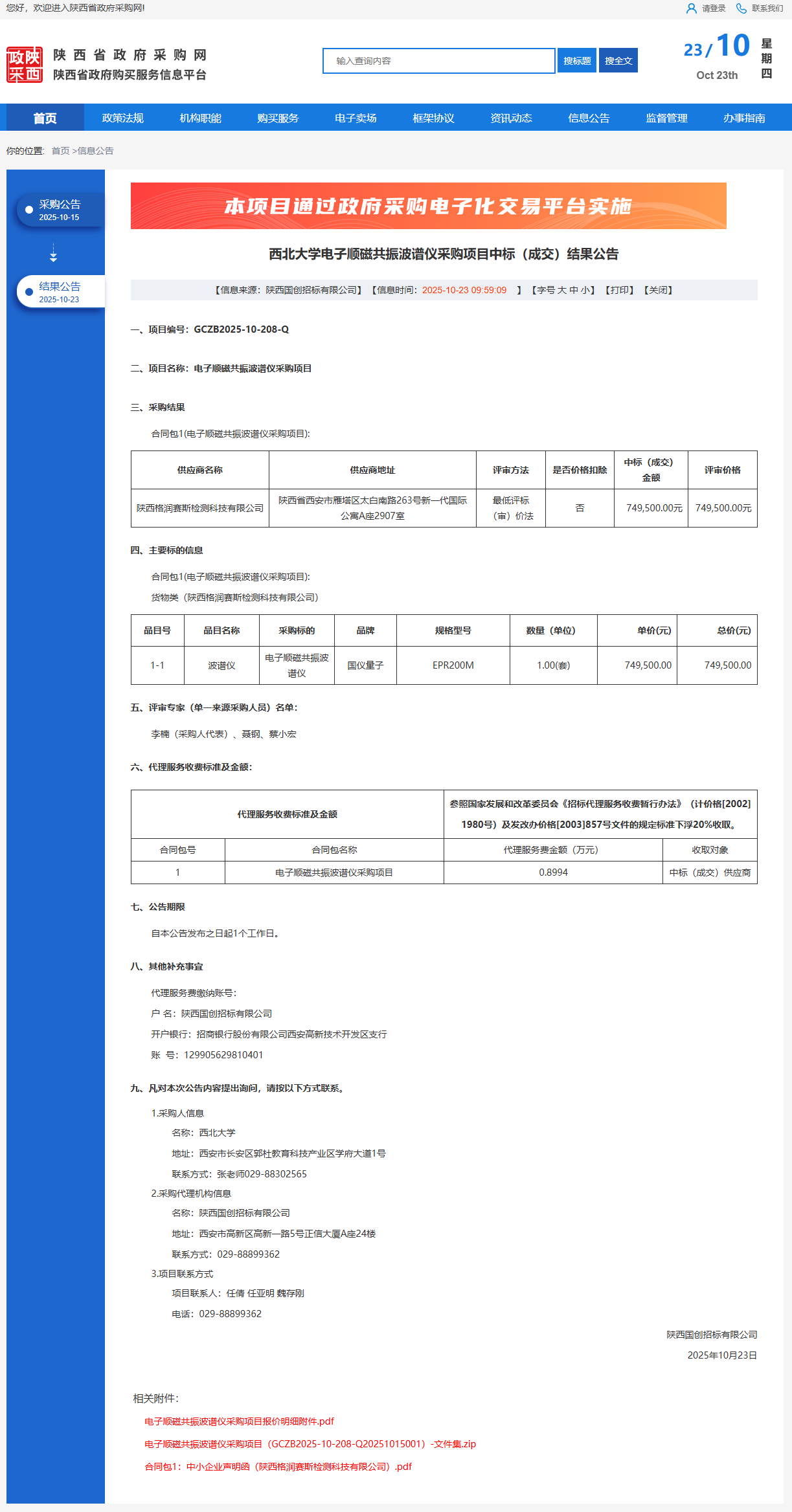 米兰买球电子顺磁共振波谱仪采购项目中标(成交)结果公告