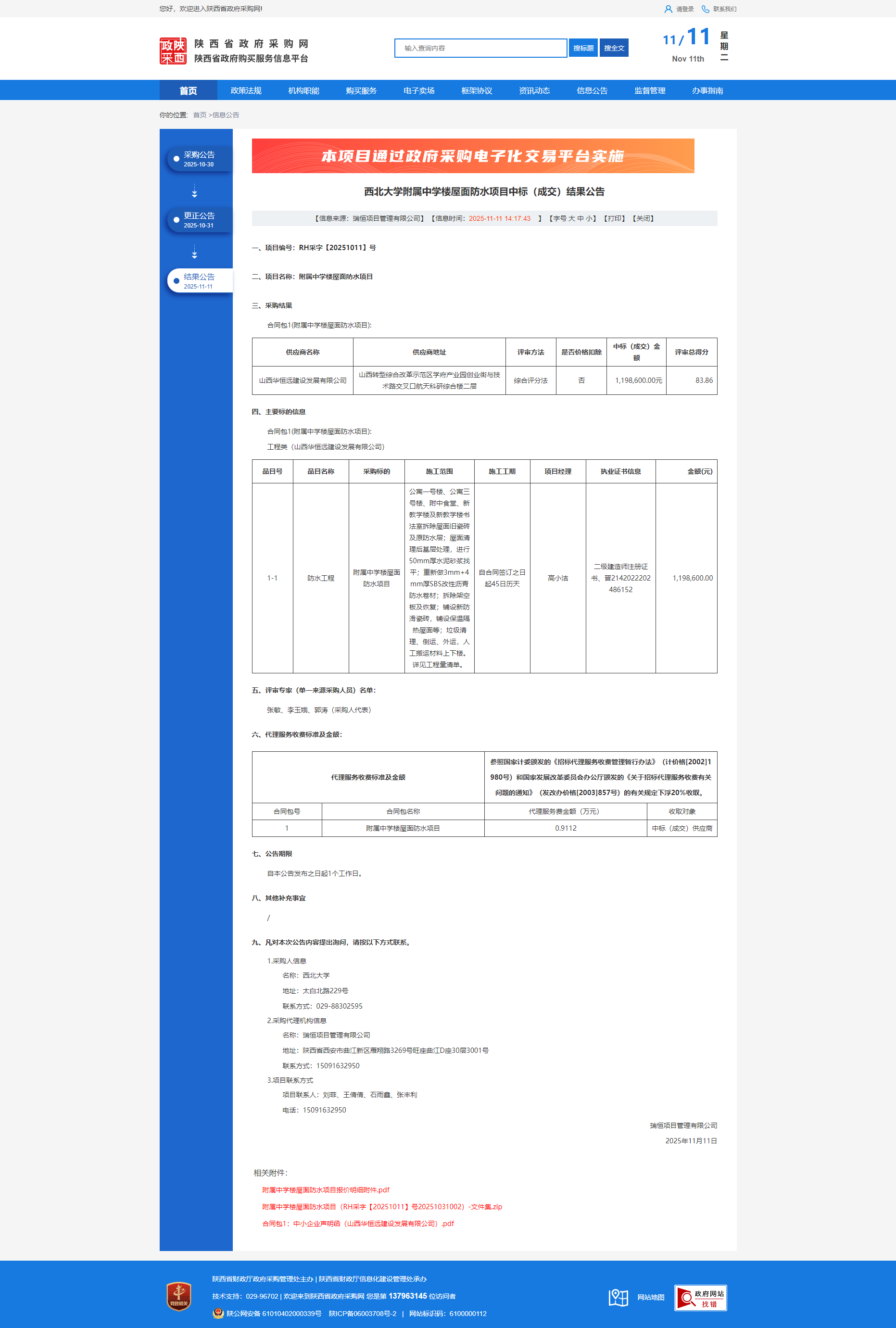 米兰买球附属中学楼屋面防水项目中标(成交)结果公告