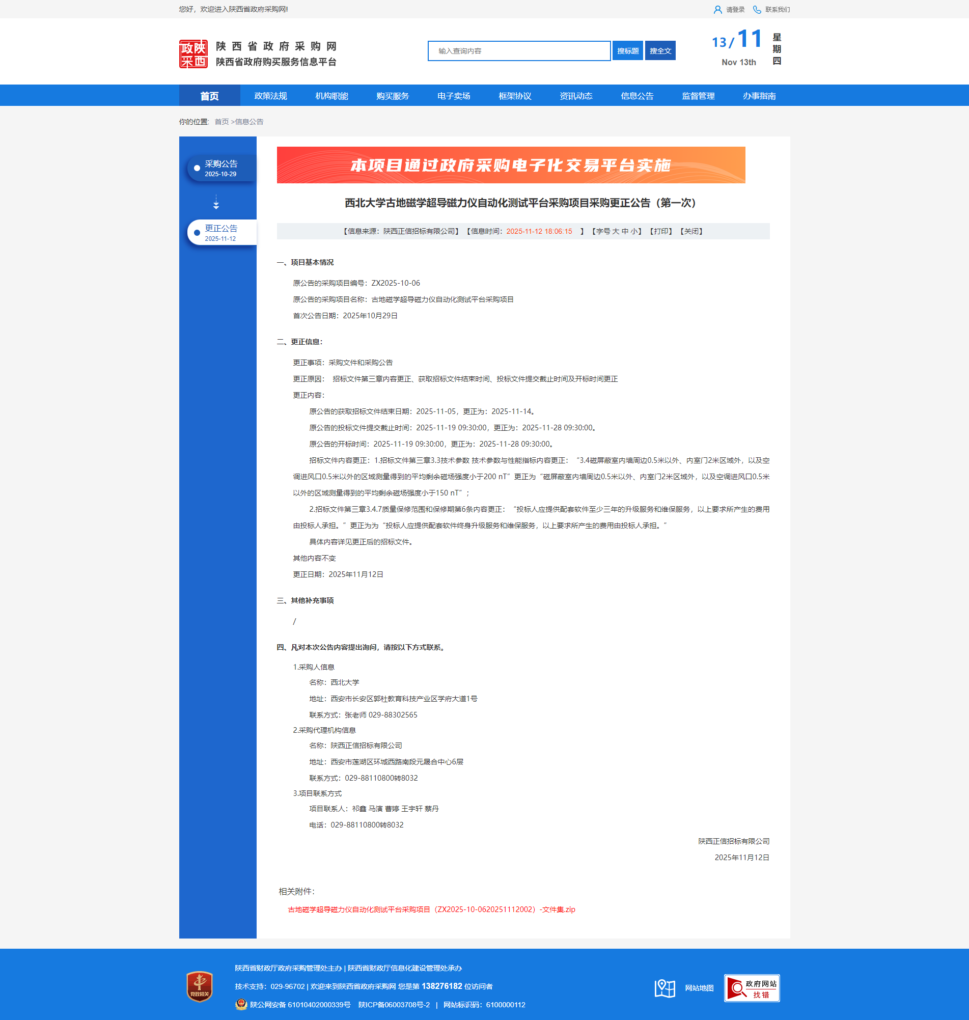 米兰买球古地磁学超导磁力仪自动化测试平台采购项目采购更正公告(第一次)