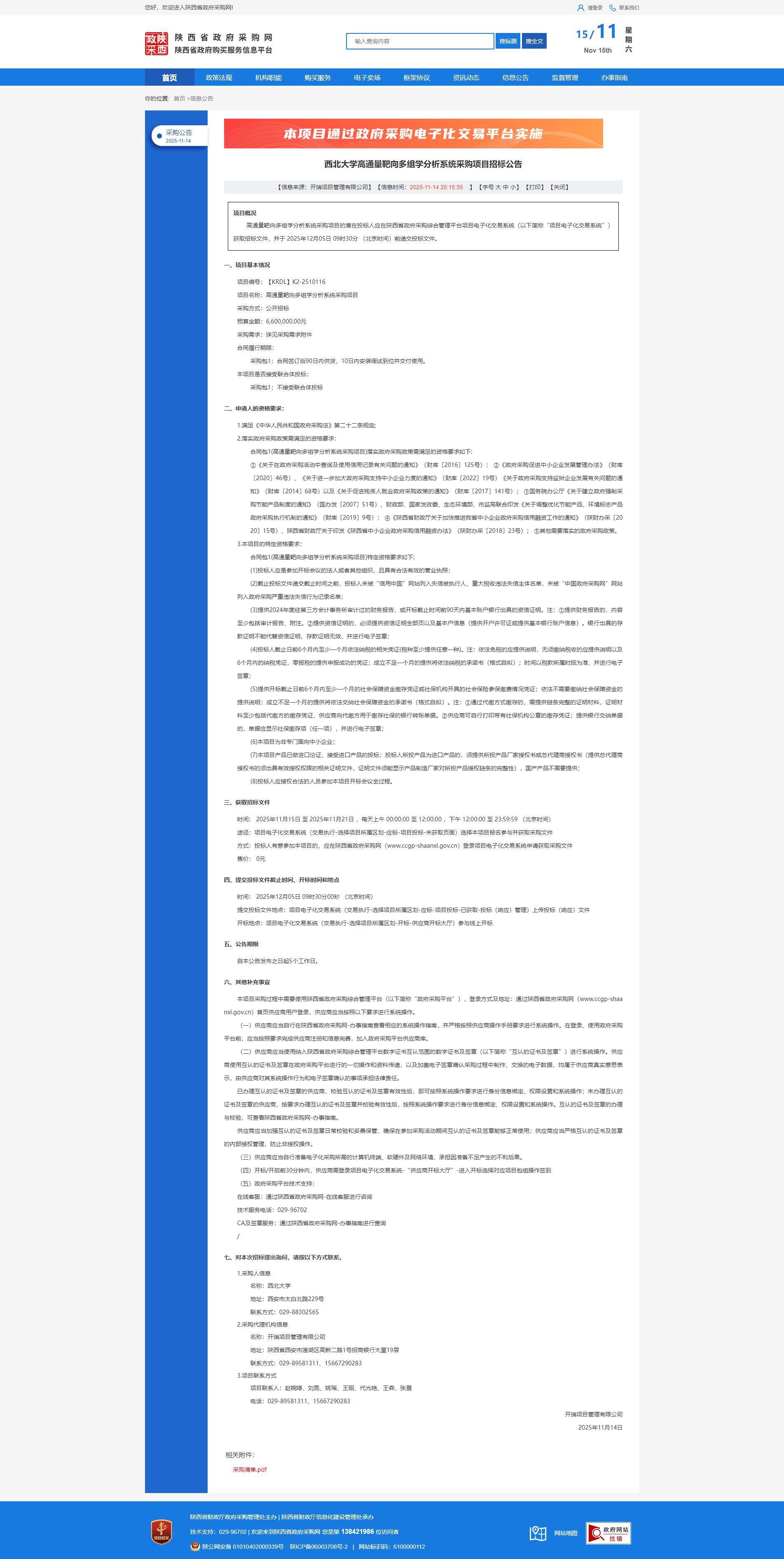 米兰买球高通量靶向多组学分析系统采购项目招标公告