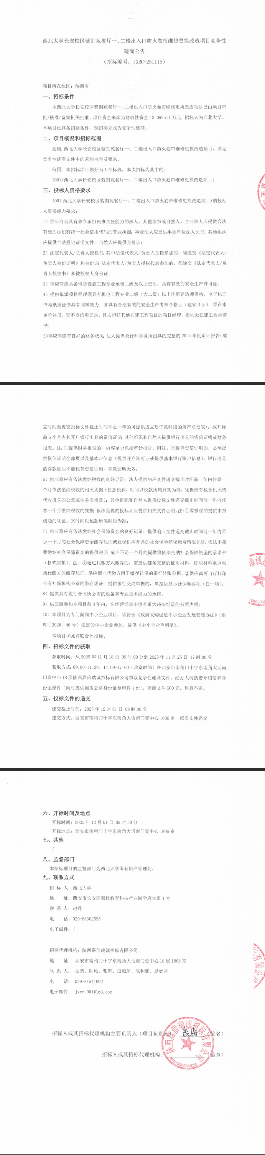 米兰买球长安校区紫荆苑餐厅一、二楼出入口防火卷帘维修更换改造项目竞争性磋商公告