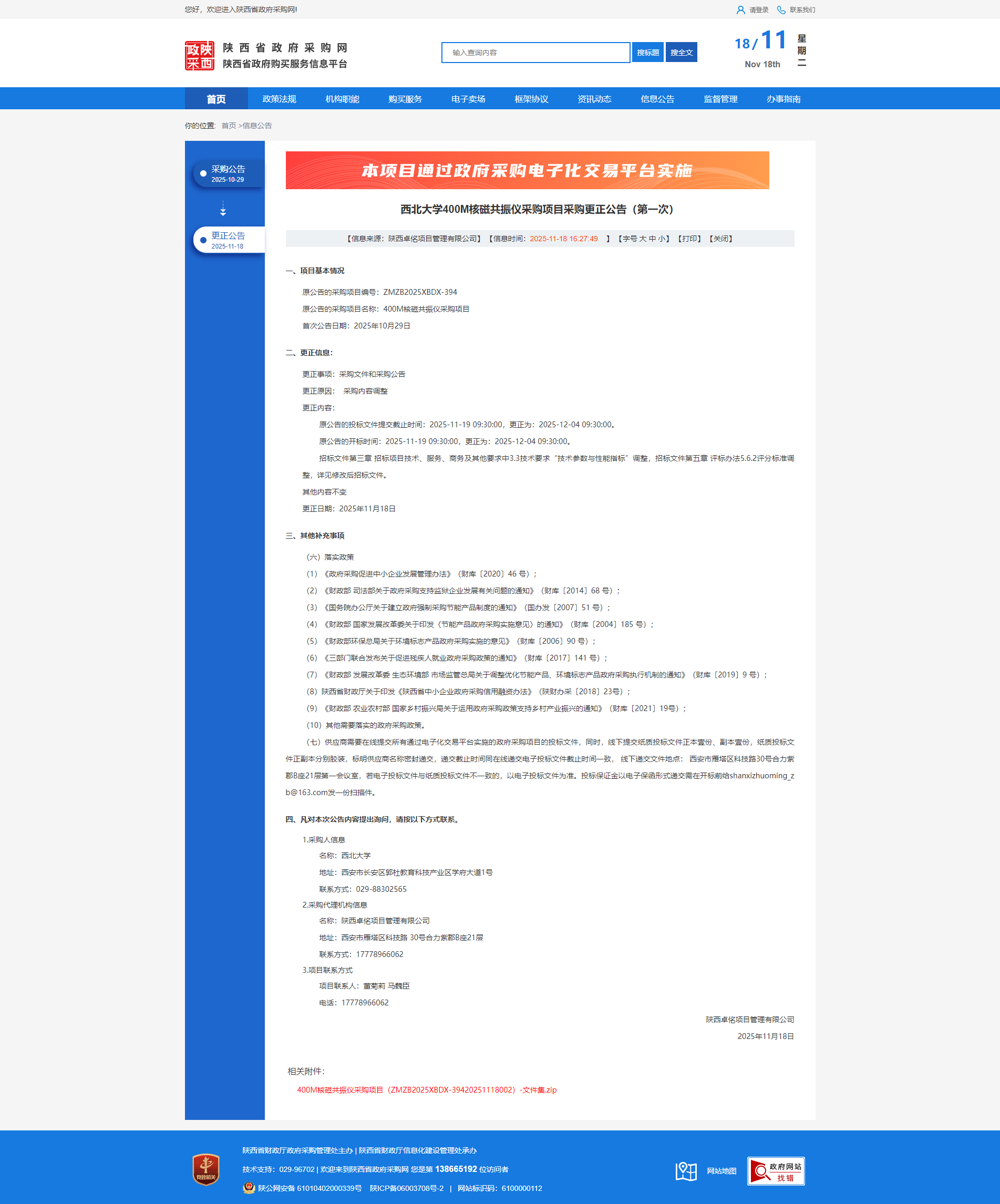 米兰买球400M核磁共振仪采购项目采购更正公告(第一次)
