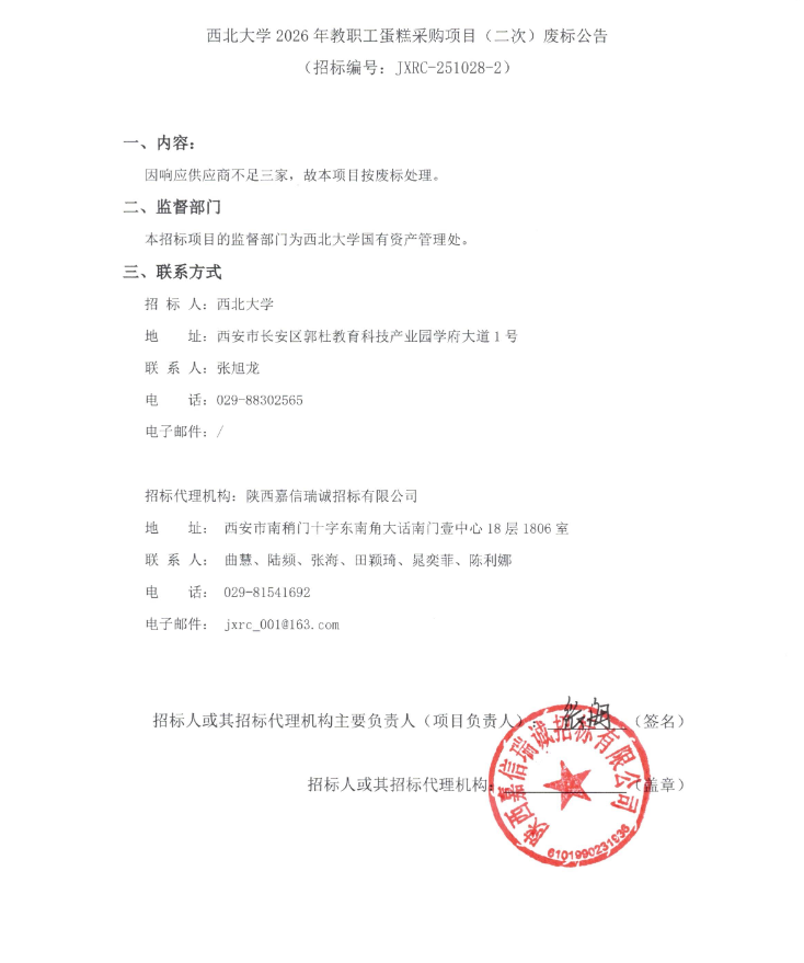 米兰买球2026年教职工蛋糕采购项目(二次)废标公告