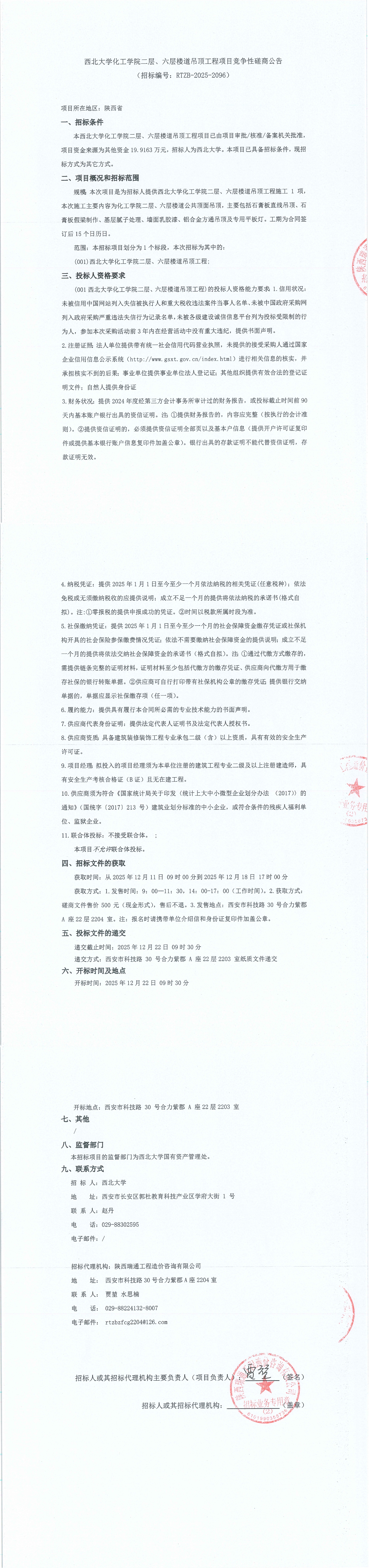 米兰买球化工学院二层、六层楼道吊顶工程项目竞争性磋商公告