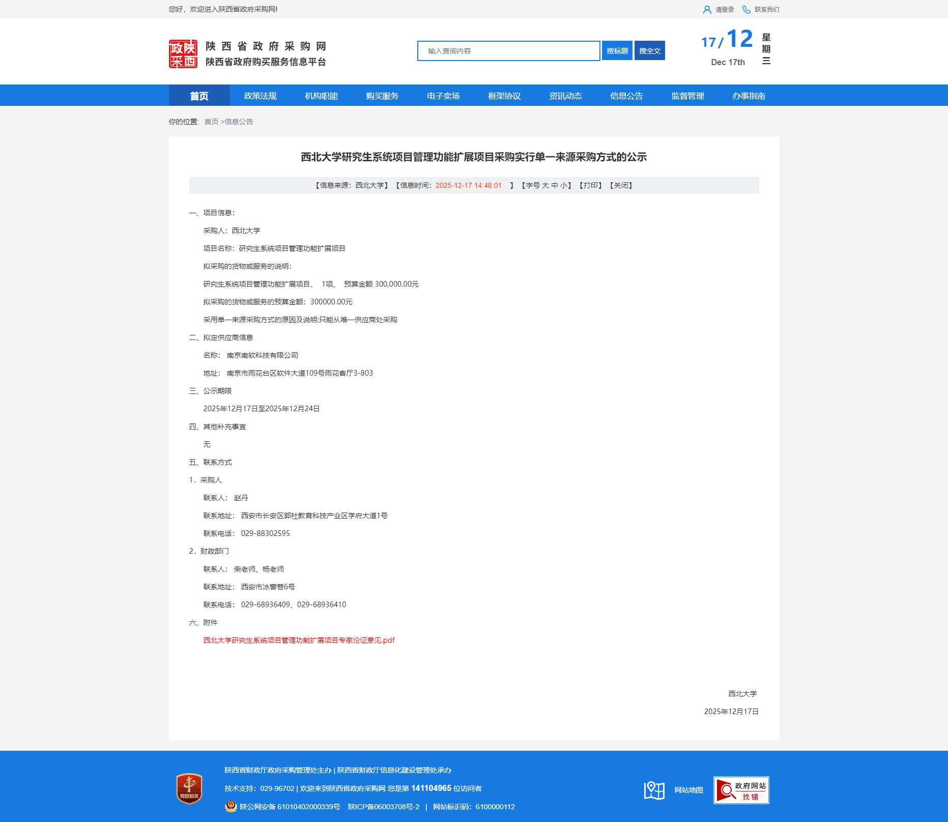 米兰买球研究生系统项目管理功能扩展项目采购实行单一来源采购方式的公示